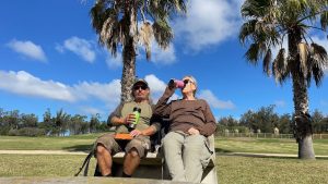 Jetzt suchen wir uns einen Picknickplatz unter Palmen ohne Mücken.