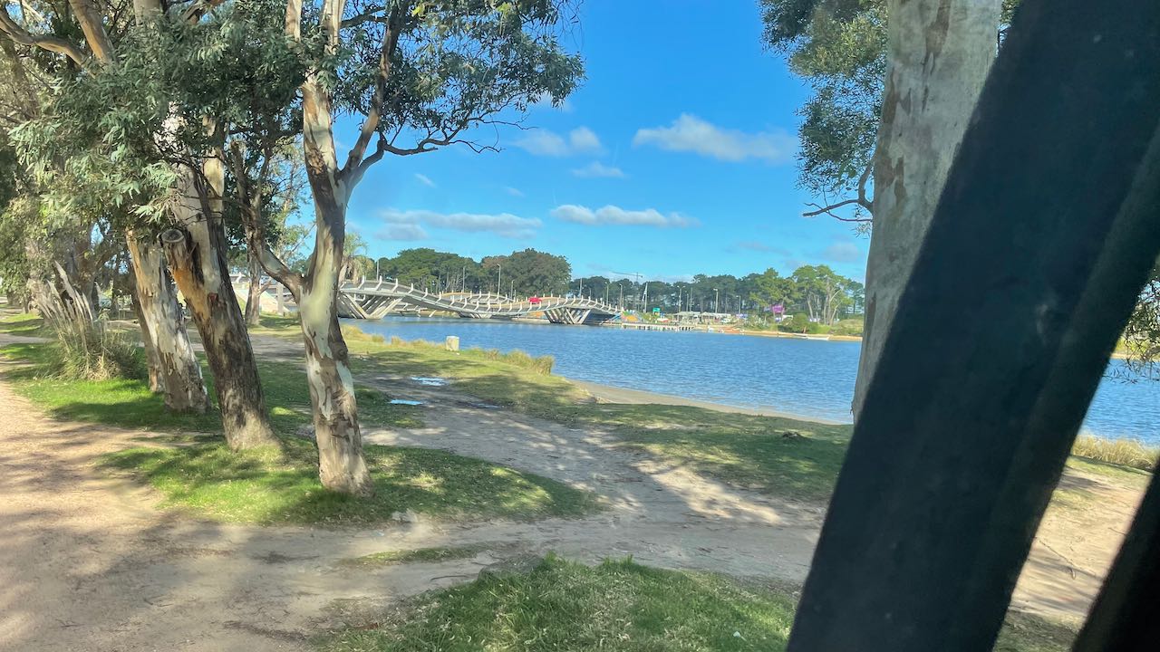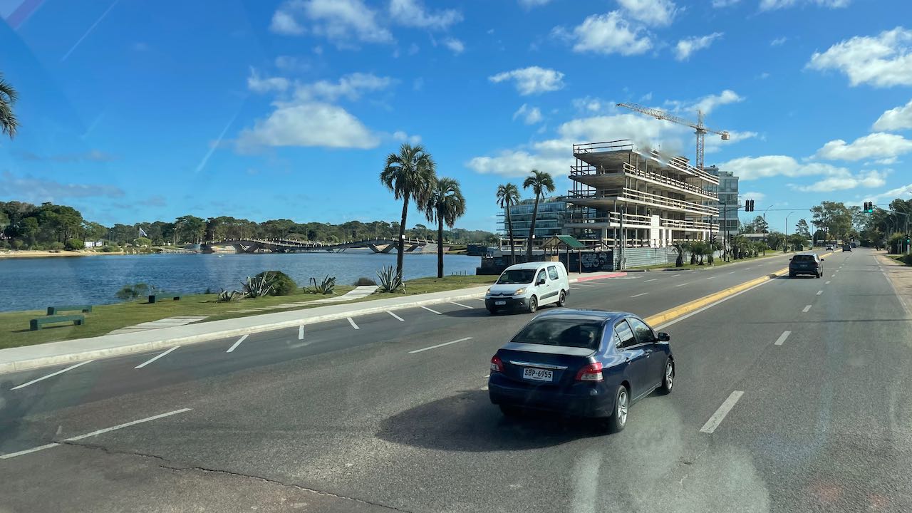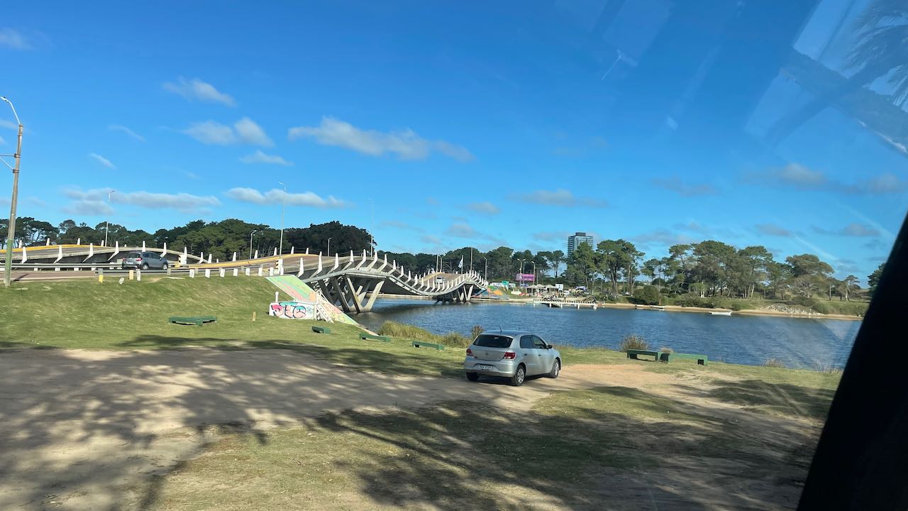 Ein Großeinkauf in Rocha, dann zum drittenmal entlang der Laguna Garzón über die Kreiselbrücke.