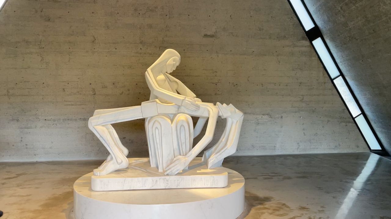 Am See steht eine Kapelle mit einer Piéta, leiser Mönchsgesang tönt durch den Raum
